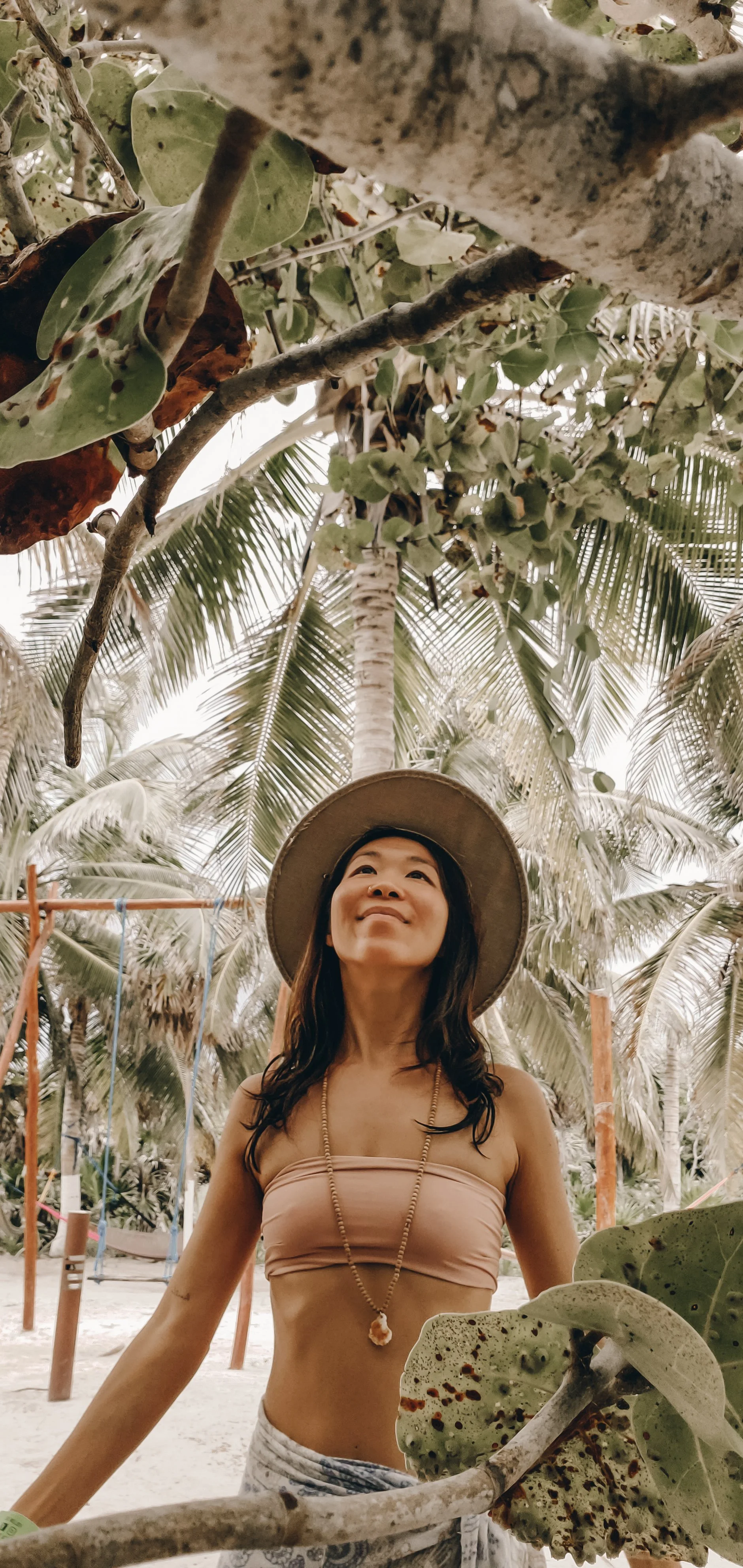 I left Toronto during the pandemic. As a free spirit, I needed to feel free to explore and feel at peace. I decided to take a trip to Mexico for a couple of weeks. I packed a small suitcase, handed my apartment keys in Liberty Village to my amazing neighbour to water my plant babies, and said that I would be back in 2 weeks. I left all of my life's possessions in that apartment, closed the door and I never saw it again. A 2 week vacation has since become 3.5 years of adventure living in Tulum, and traveling all over Mexico. I love slow travel and being immersed in Mexican culture, getting to know its people, tasting its delicious food, falling in love with its art and creativity. I have since expanded my business in Mexico to making and selling holistic natural skin + bodycare products, textiles, and launching a yoga wear company in 2024.